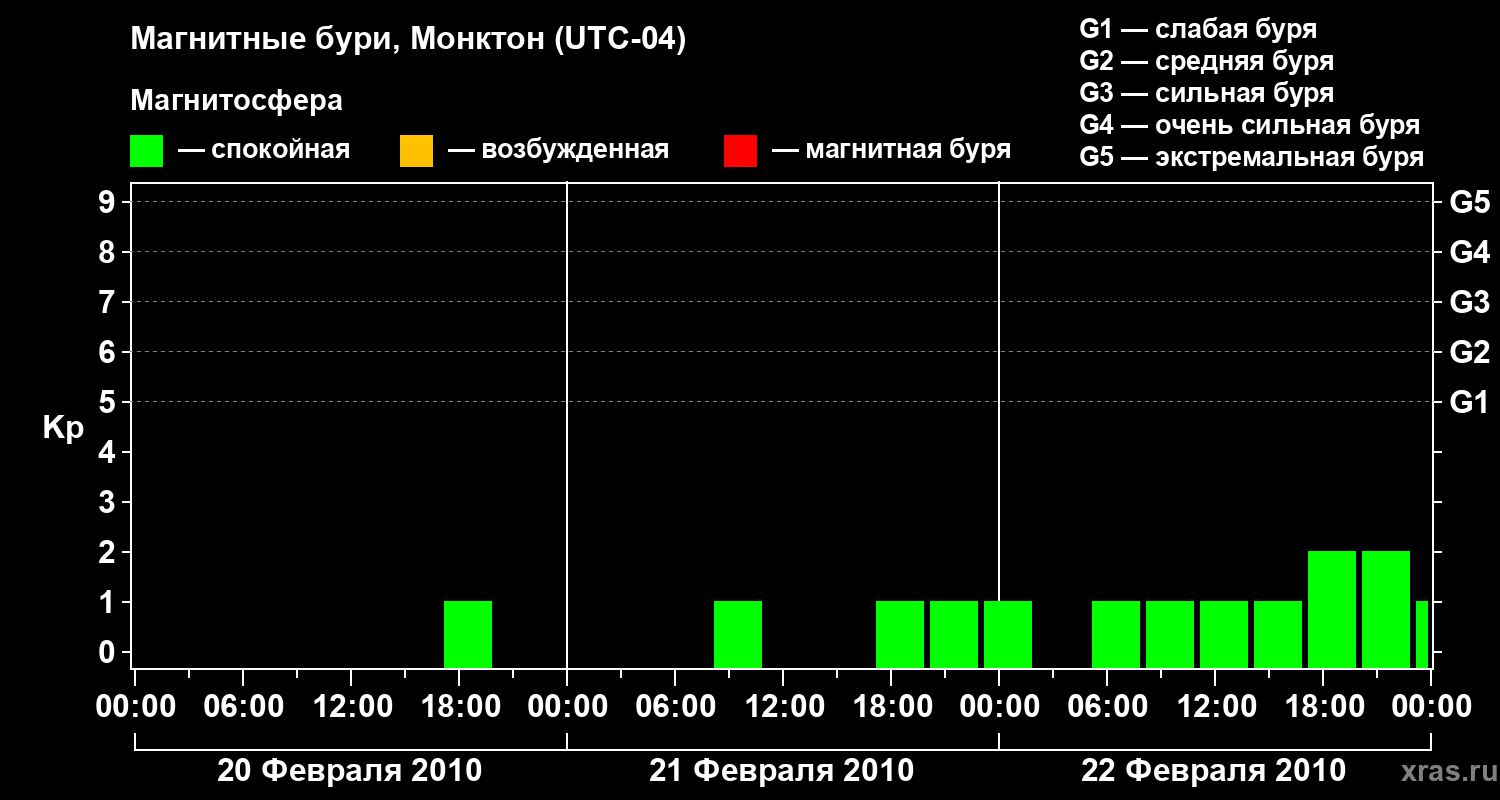 Магнитные бури в Монктоне — 22 февраля 2010 года