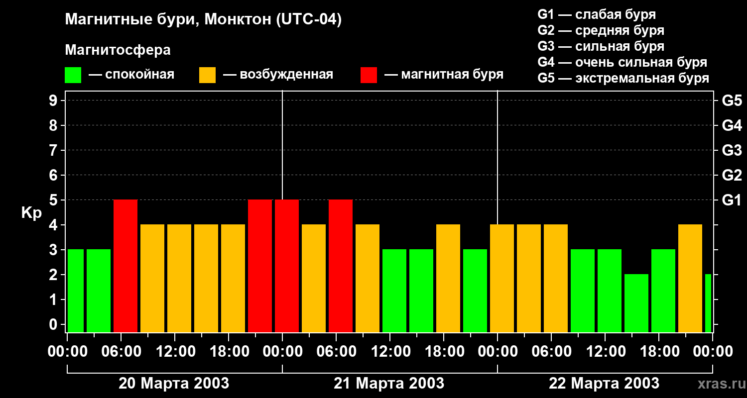 Магнитные бури в Монктоне — 22 марта 2003 года