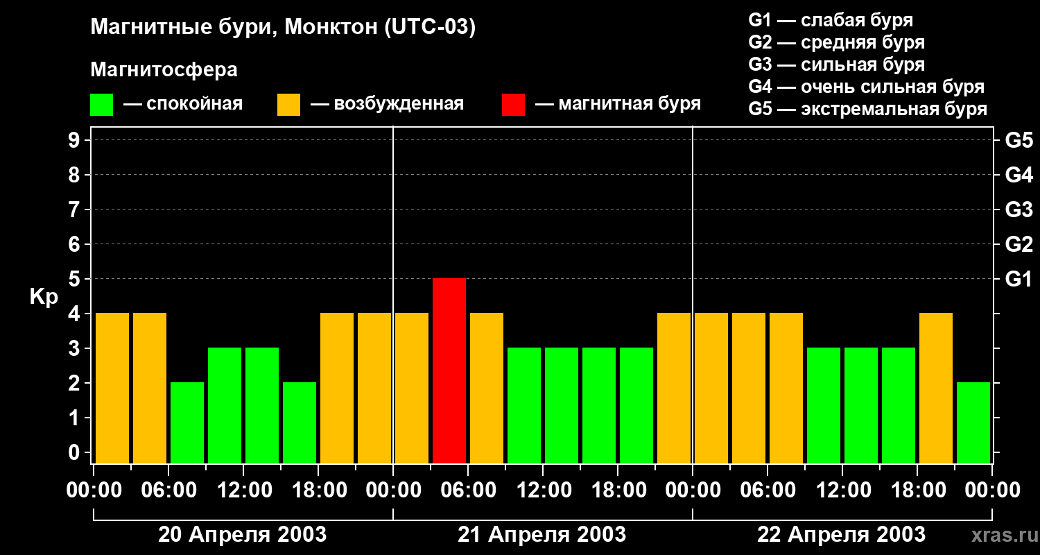 Магнитные бури в Монктоне — 22 апреля 2003 года