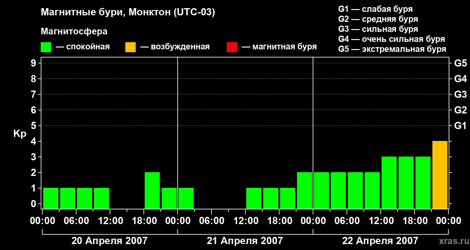Магнитные бури в Монктоне — 22 апреля 2007 года