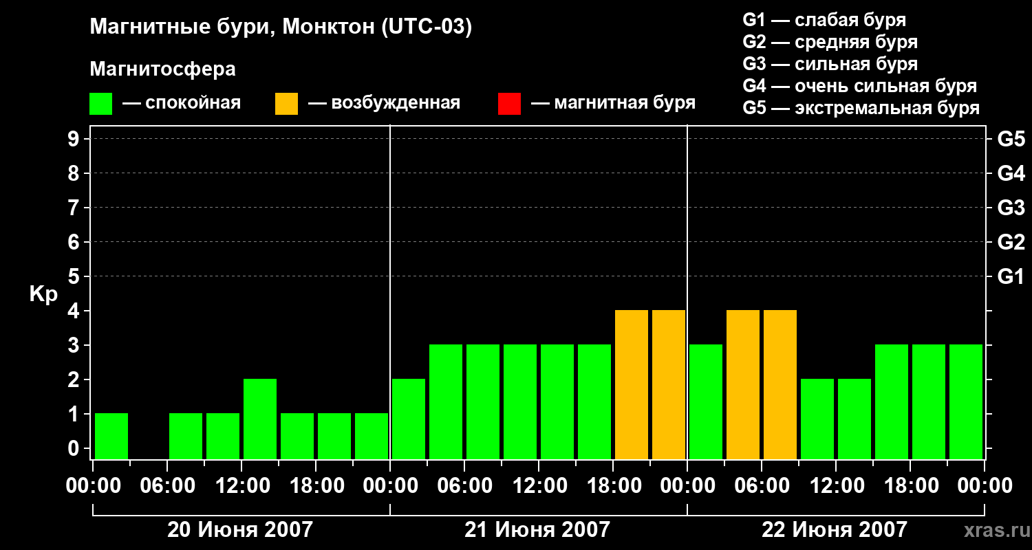 Магнитные бури в Монктоне — 22 июня 2007 года