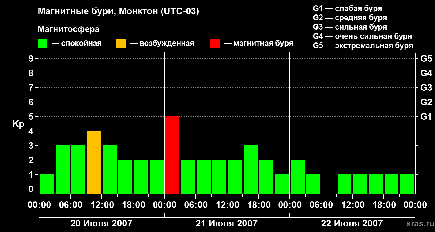 Магнитные бури в Монктоне — 22 июля 2007 года