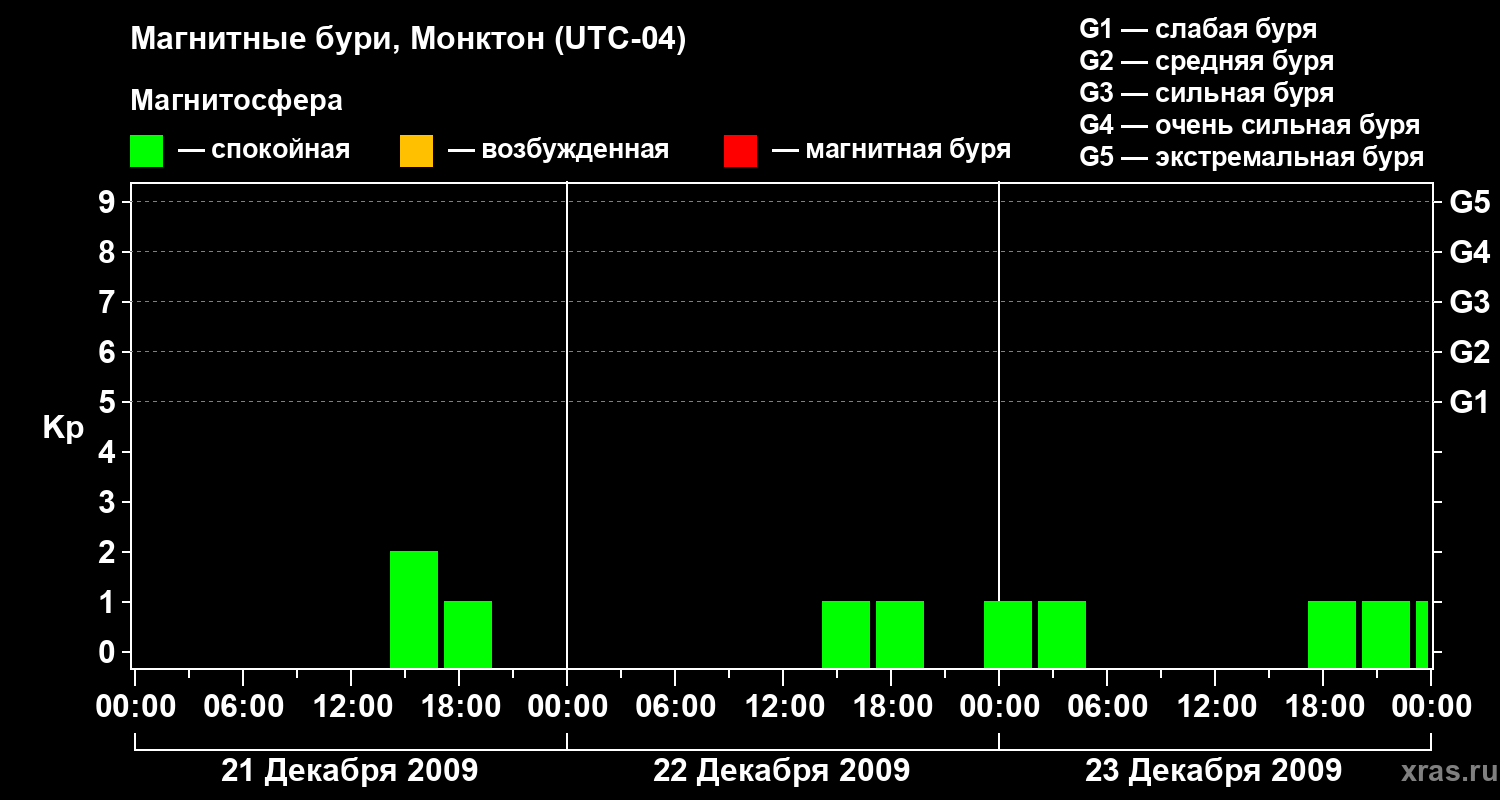 Магнитные бури в Монктоне — 23 декабря 2009 года