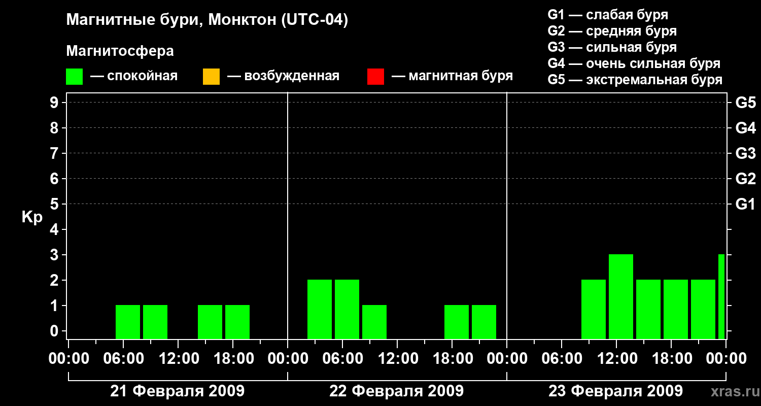 Магнитные бури в Монктоне — 23 февраля 2009 года