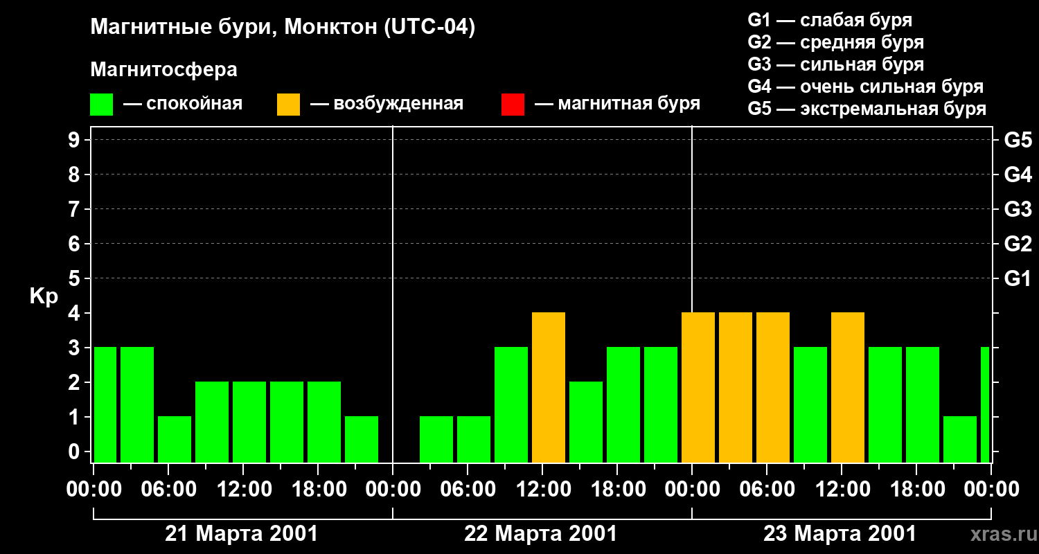 Магнитные бури в Монктоне 23 марта 2001 года