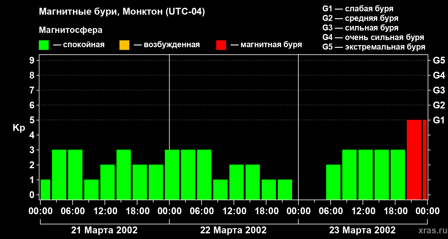 Магнитные бури в Монктоне — 23 марта 2002 года