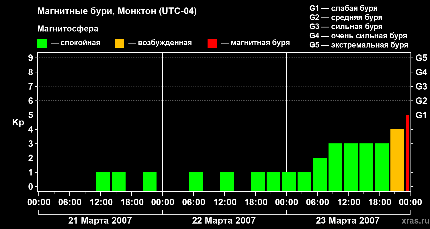 Магнитные бури в Монктоне — 23 марта 2007 года
