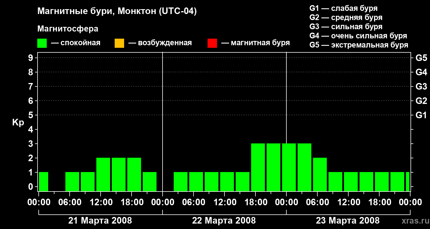 Магнитные бури в Монктоне — 23 марта 2008 года