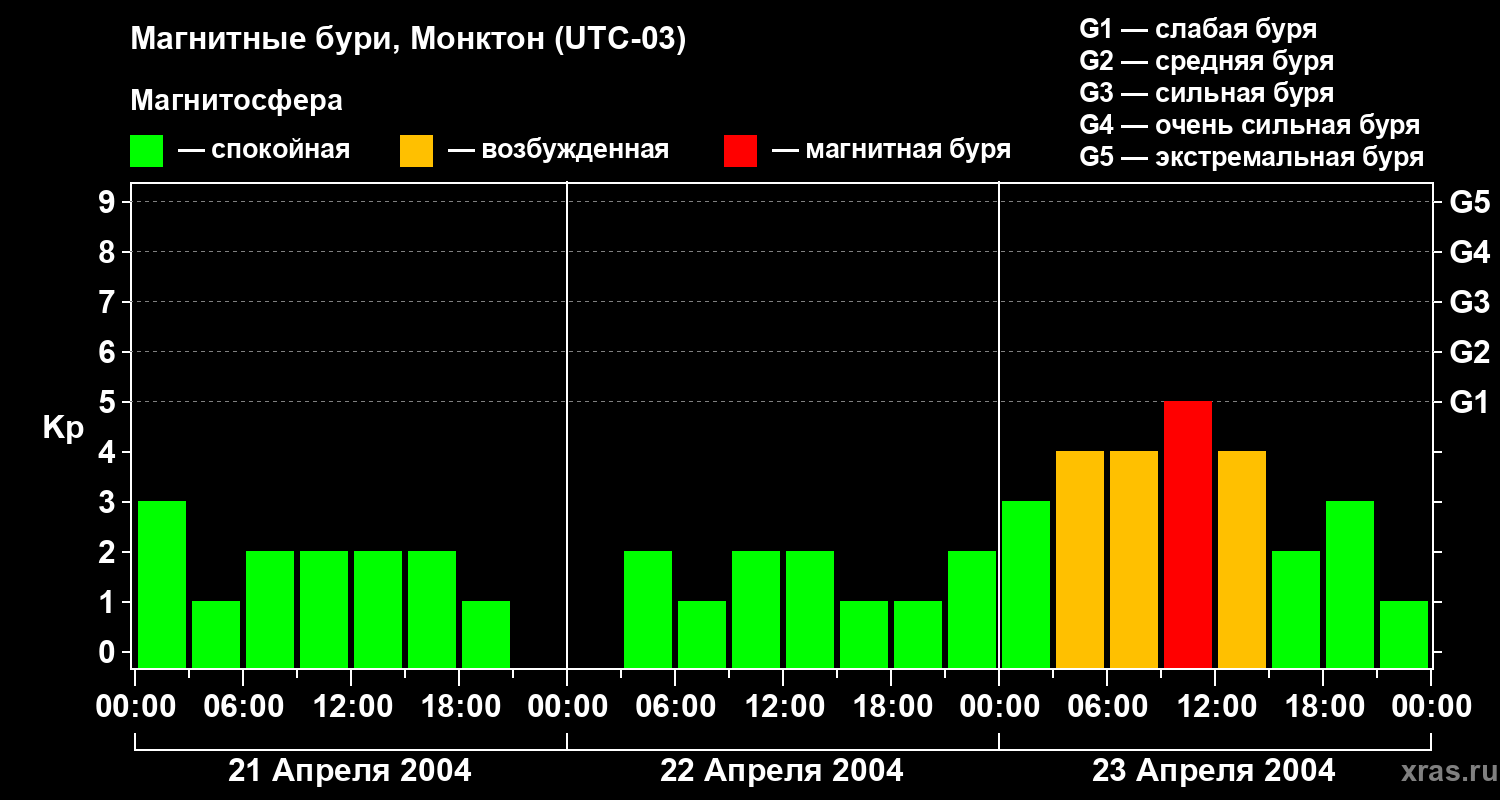 Магнитные бури в Монктоне — 23 апреля 2004 года