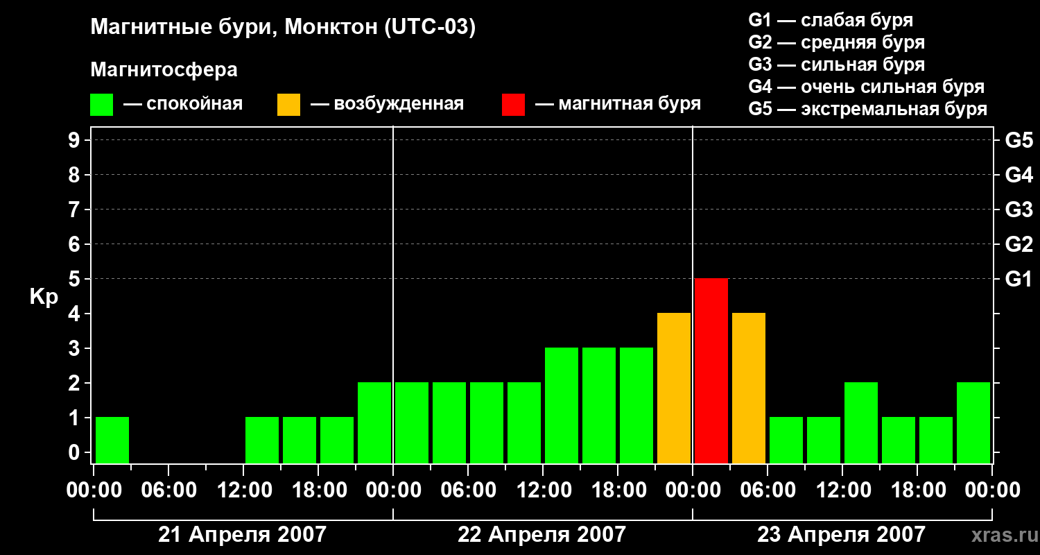 Магнитные бури в Монктоне — 23 апреля 2007 года