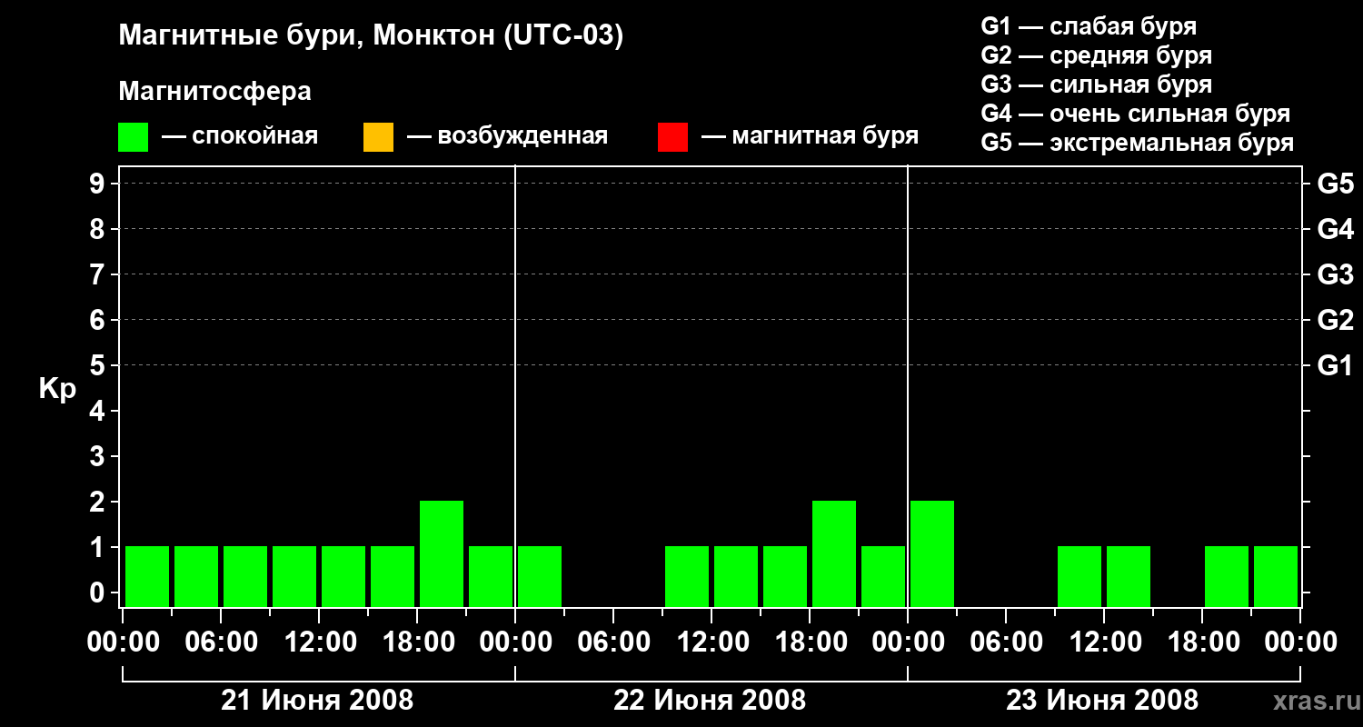 Магнитные бури в Монктоне 23 июня 2008 года