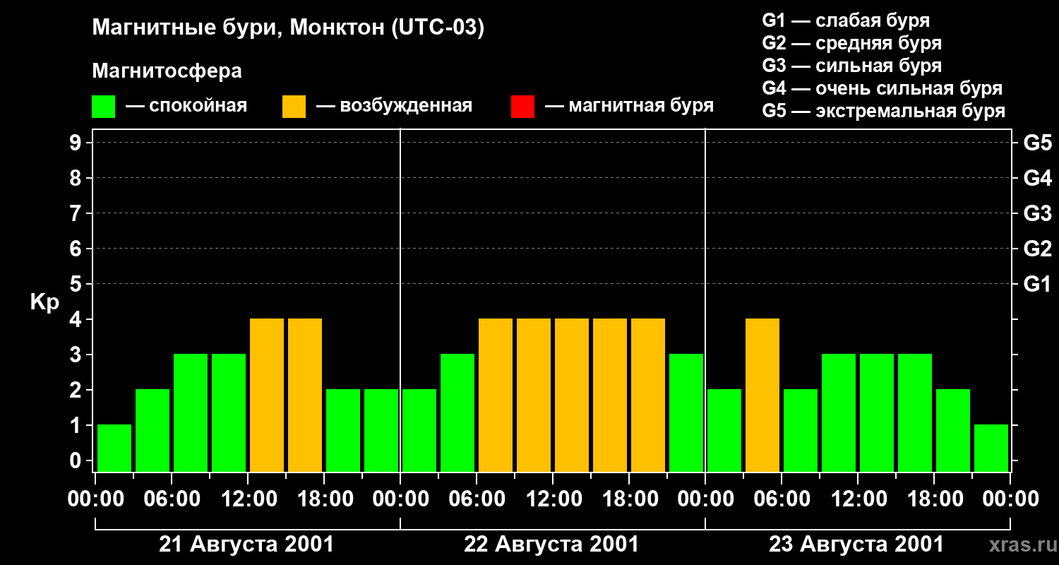 Магнитные бури в Монктоне 23 августа 2001 года