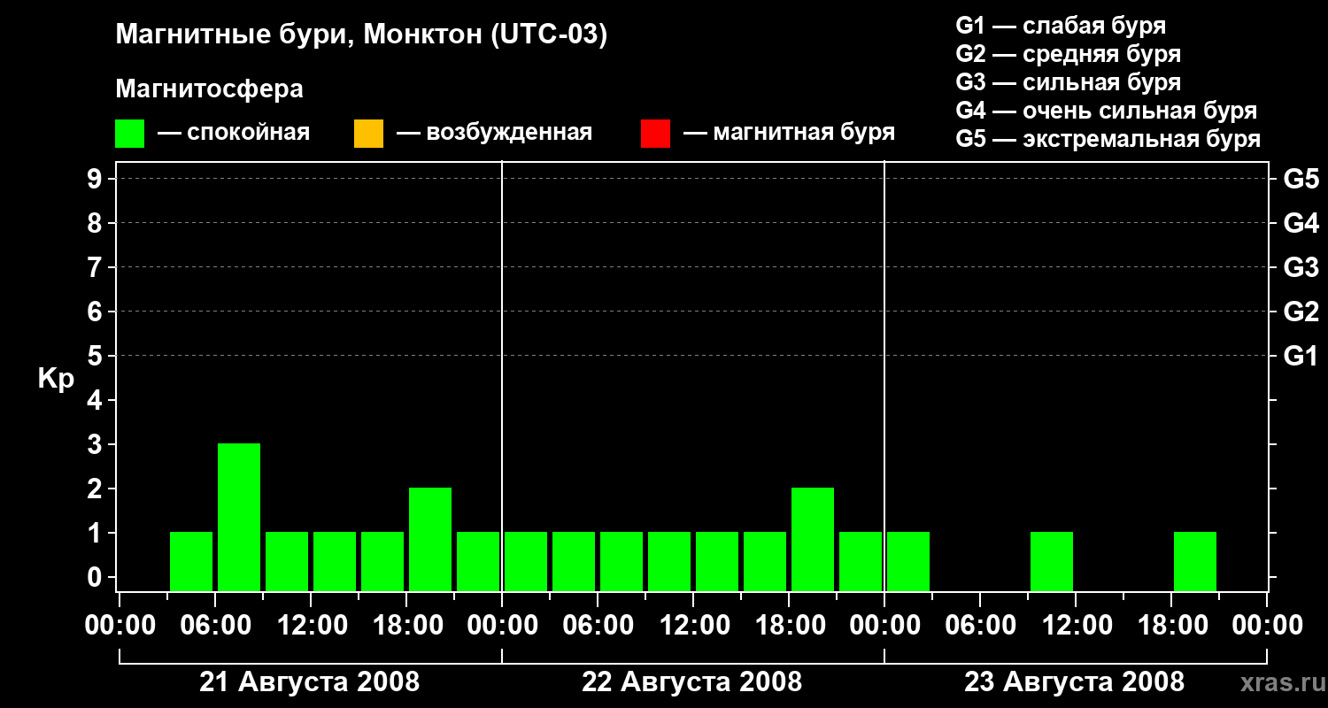 Магнитные бури в Монктоне — 23 августа 2008 года