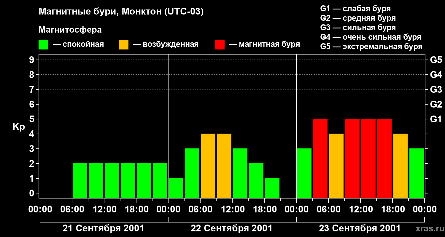 Магнитные бури в Монктоне — 23 сентября 2001 года