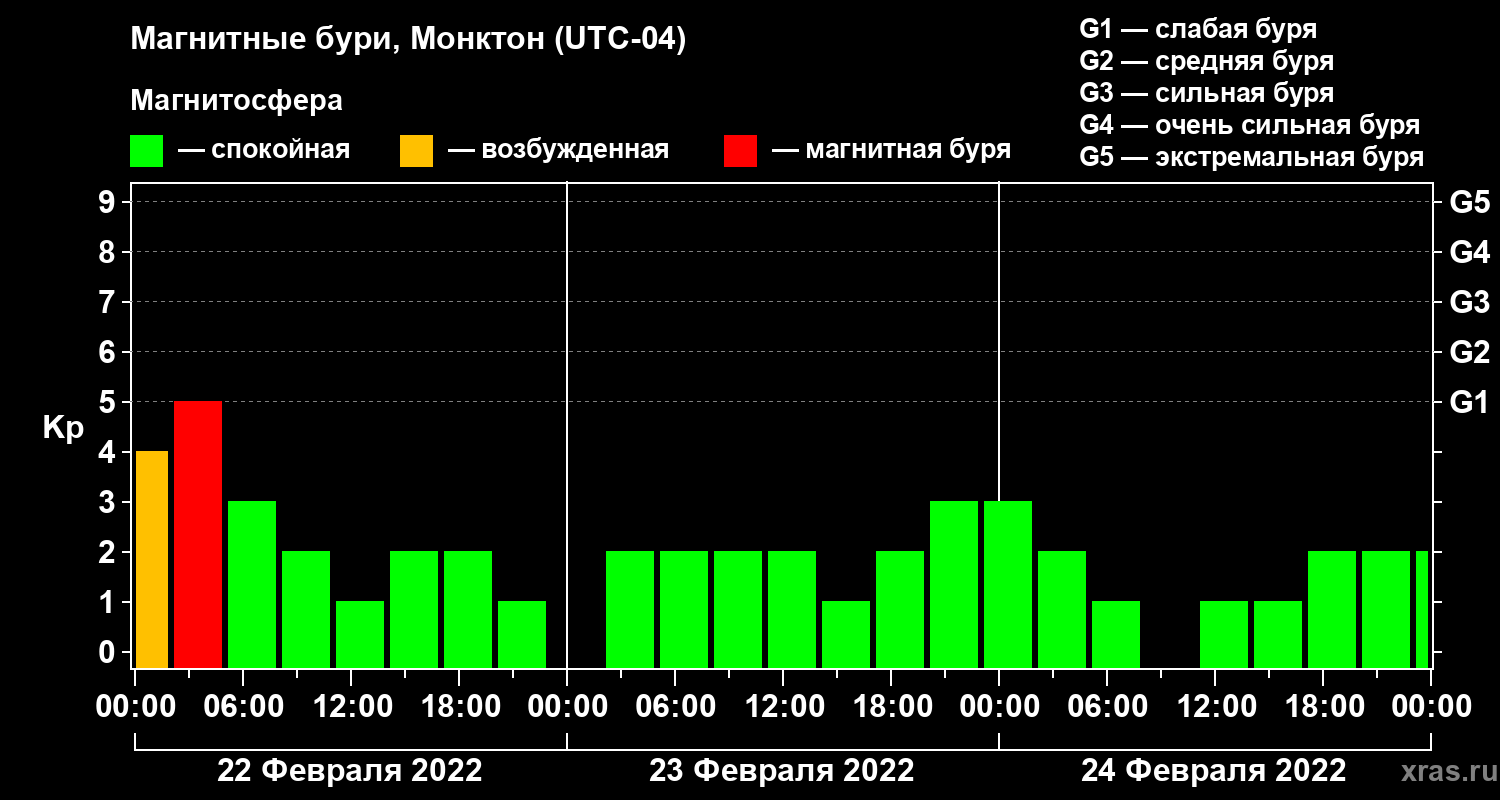 Магнитные бури в Монктоне — 24 февраля 2022 года