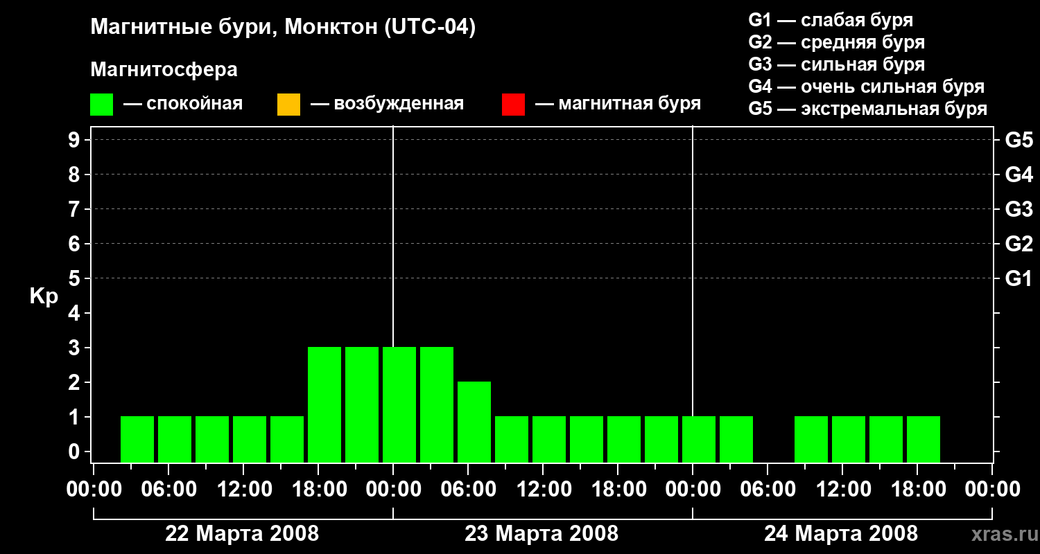 Магнитные бури в Монктоне — 24 марта 2008 года
