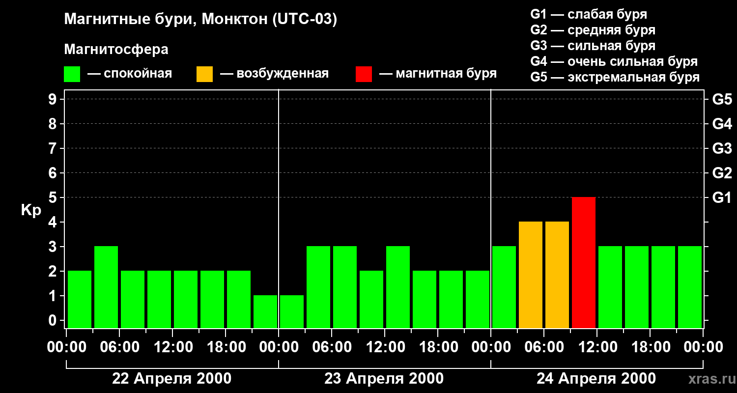 Магнитные бури в Монктоне — 24 апреля 2000 года