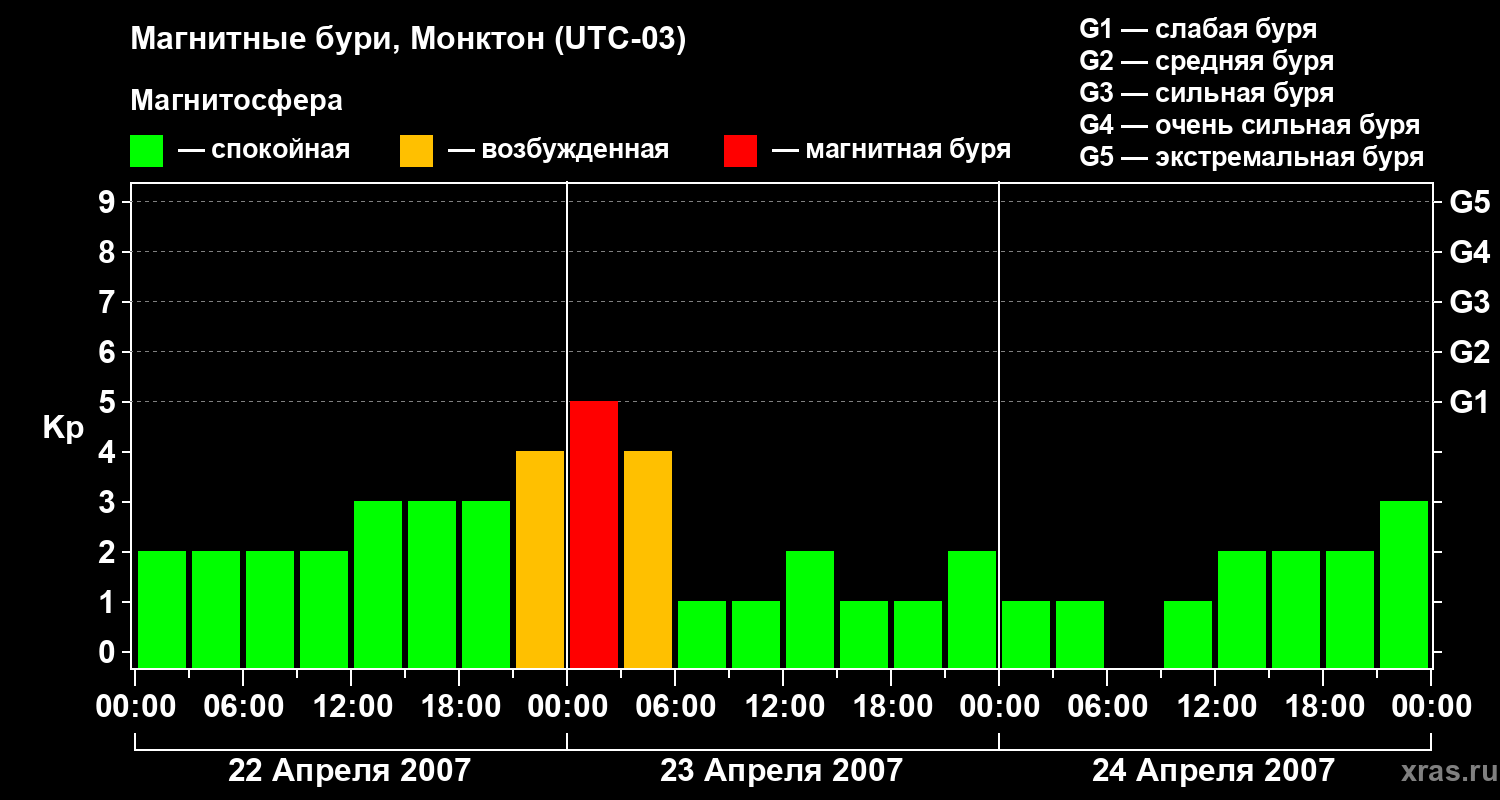 Магнитные бури в Монктоне — 24 апреля 2007 года