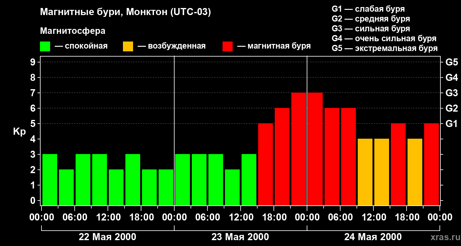 Магнитные бури в Монктоне — 24 мая 2000 года