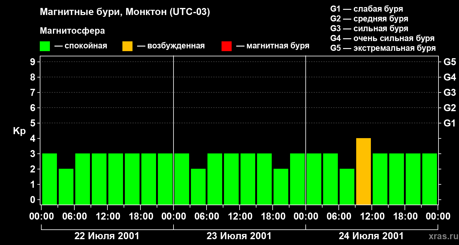 Магнитные бури в Монктоне — 24 июля 2001 года
