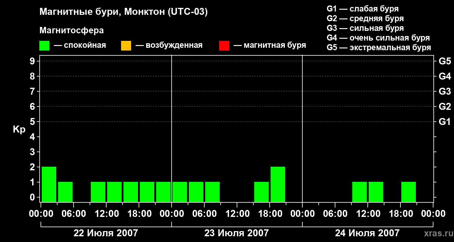 Магнитные бури в Монктоне — 24 июля 2007 года