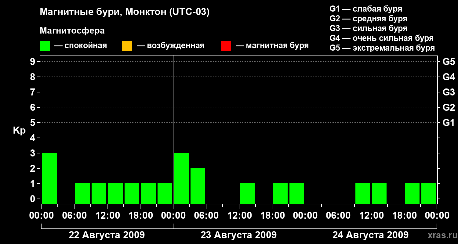 Магнитные бури в Монктоне — 24 августа 2009 года