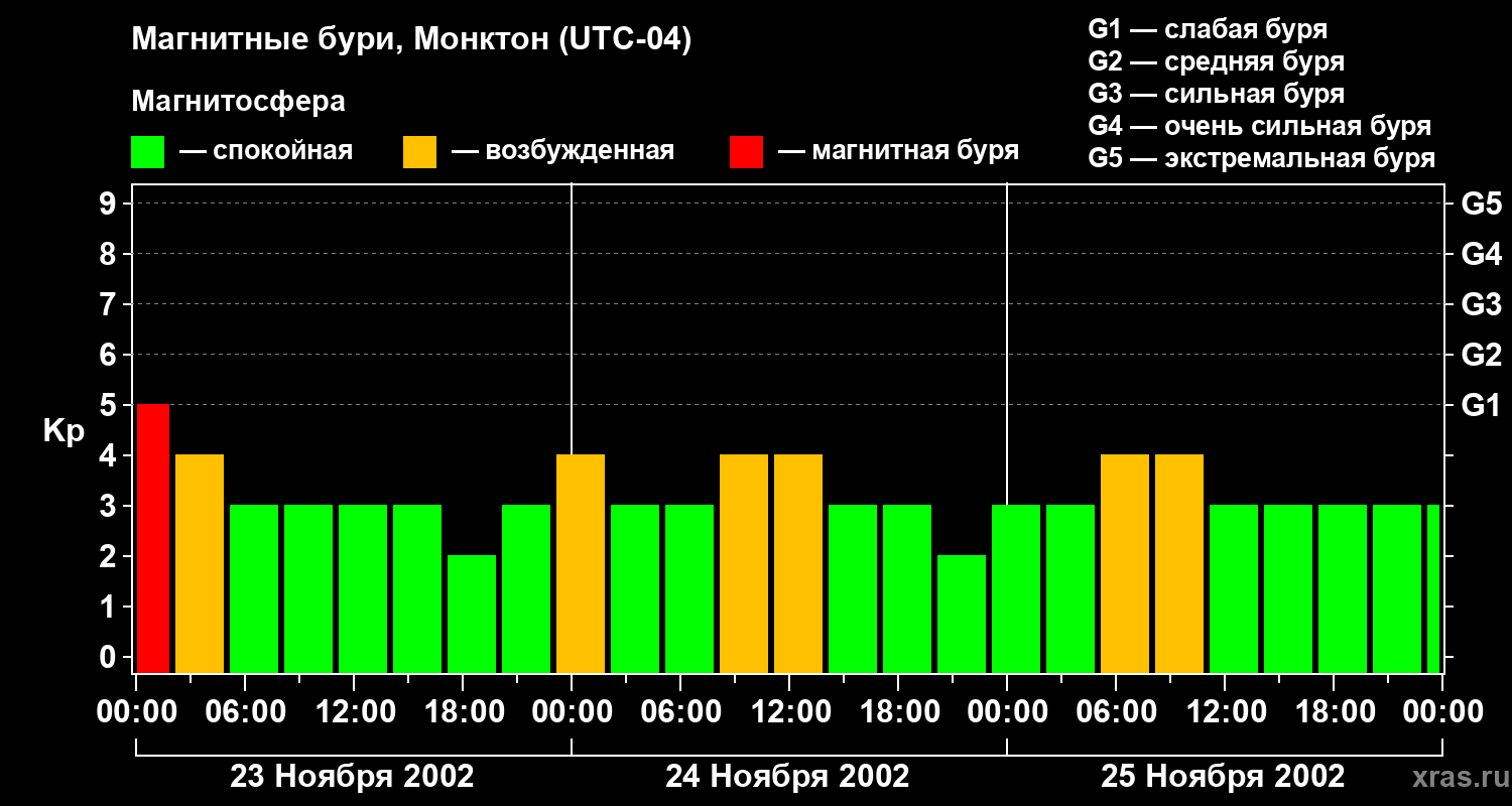 Магнитные бури в Монктоне — 25 ноября 2002 года