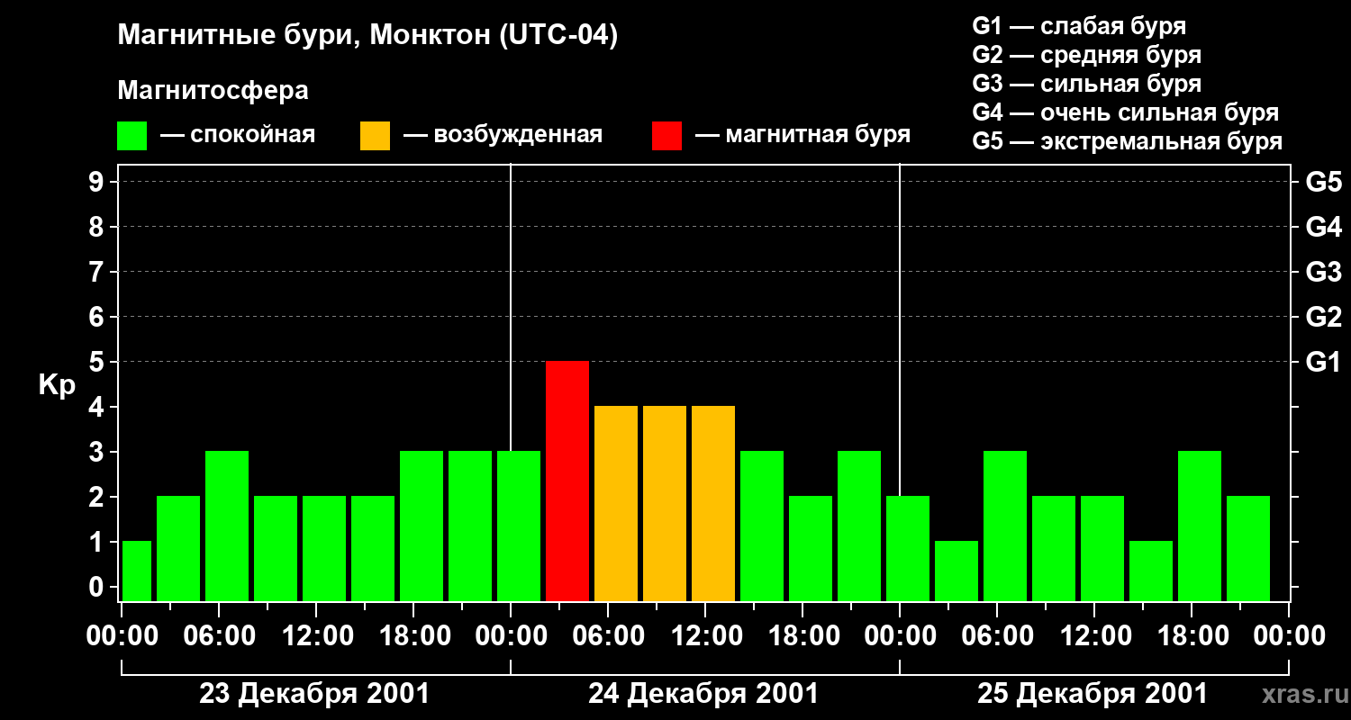 Магнитные бури в Монктоне — 25 декабря 2001 года