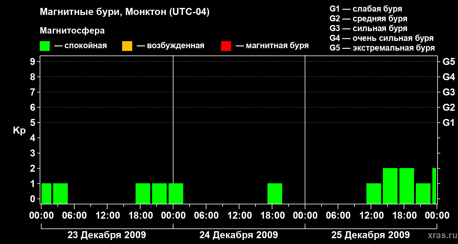 Магнитные бури в Монктоне — 25 декабря 2009 года