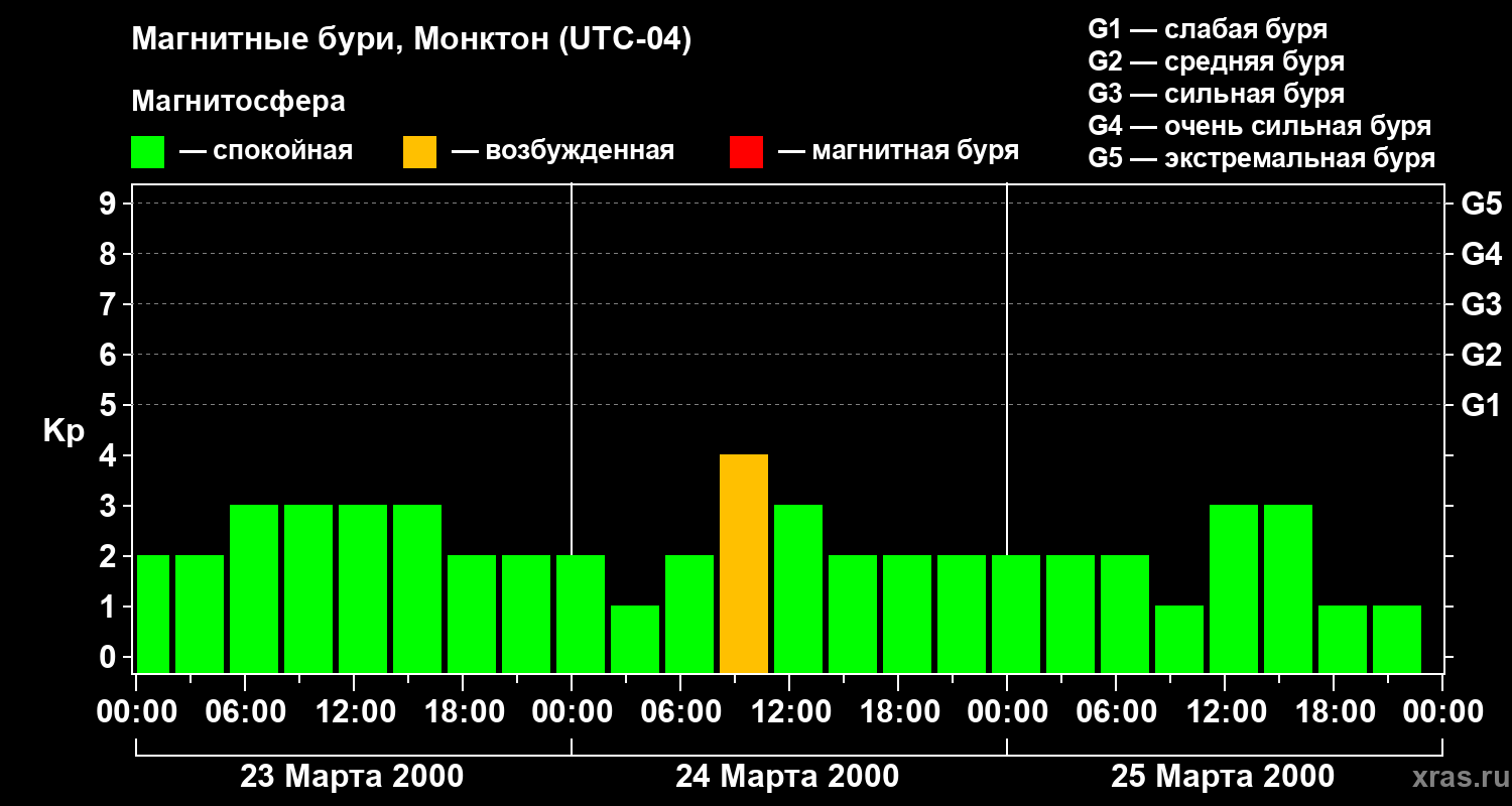 Магнитные бури в Монктоне — 25 марта 2000 года
