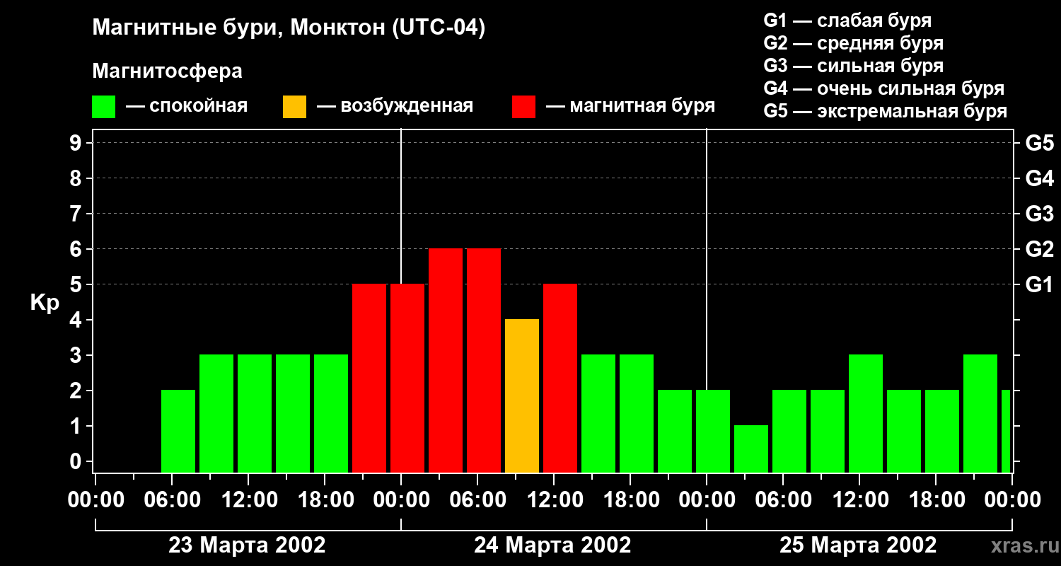 Магнитные бури в Монктоне — 25 марта 2002 года