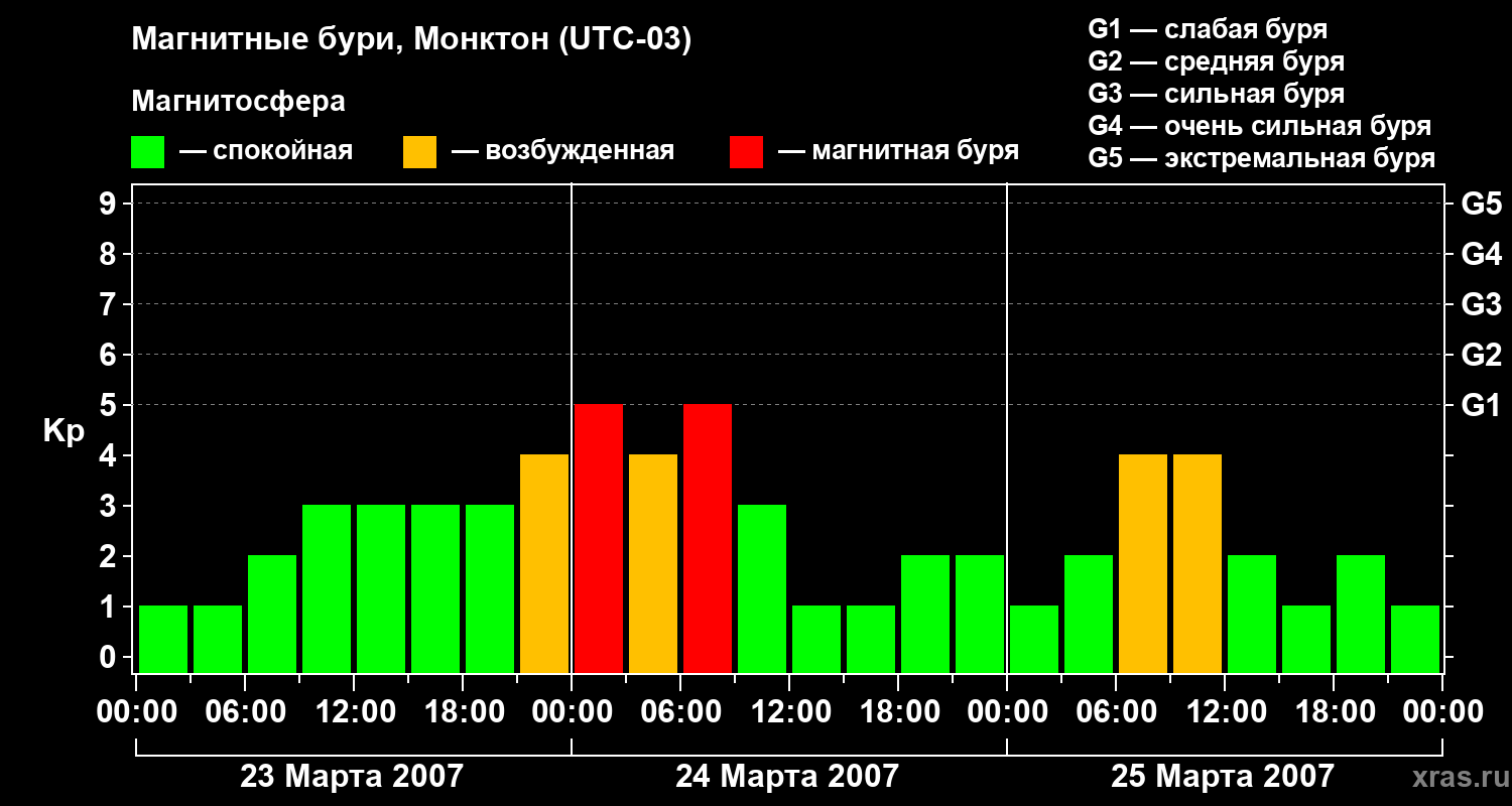 Магнитные бури в Монктоне — 25 марта 2007 года