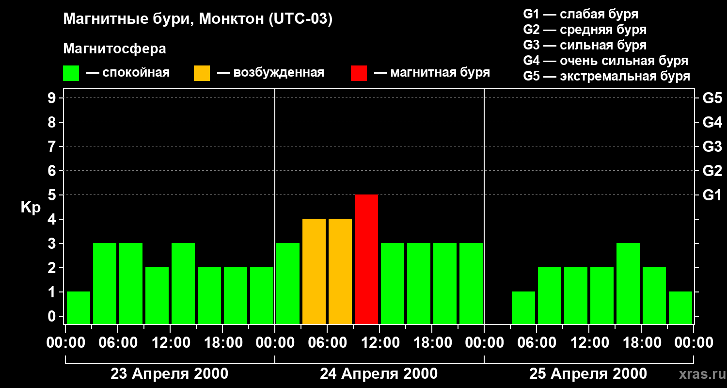 Магнитные бури в Монктоне — 25 апреля 2000 года