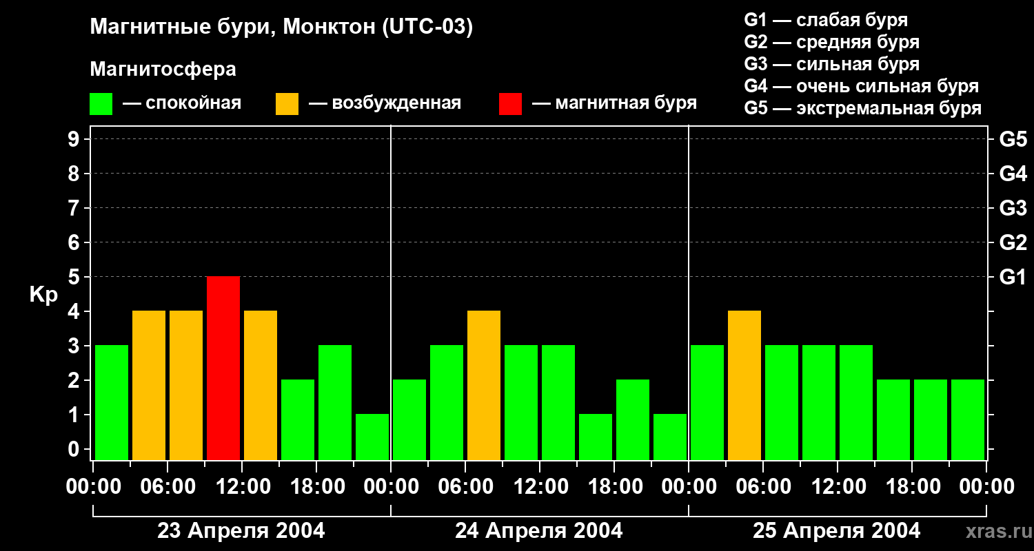 Магнитные бури в Монктоне — 25 апреля 2004 года