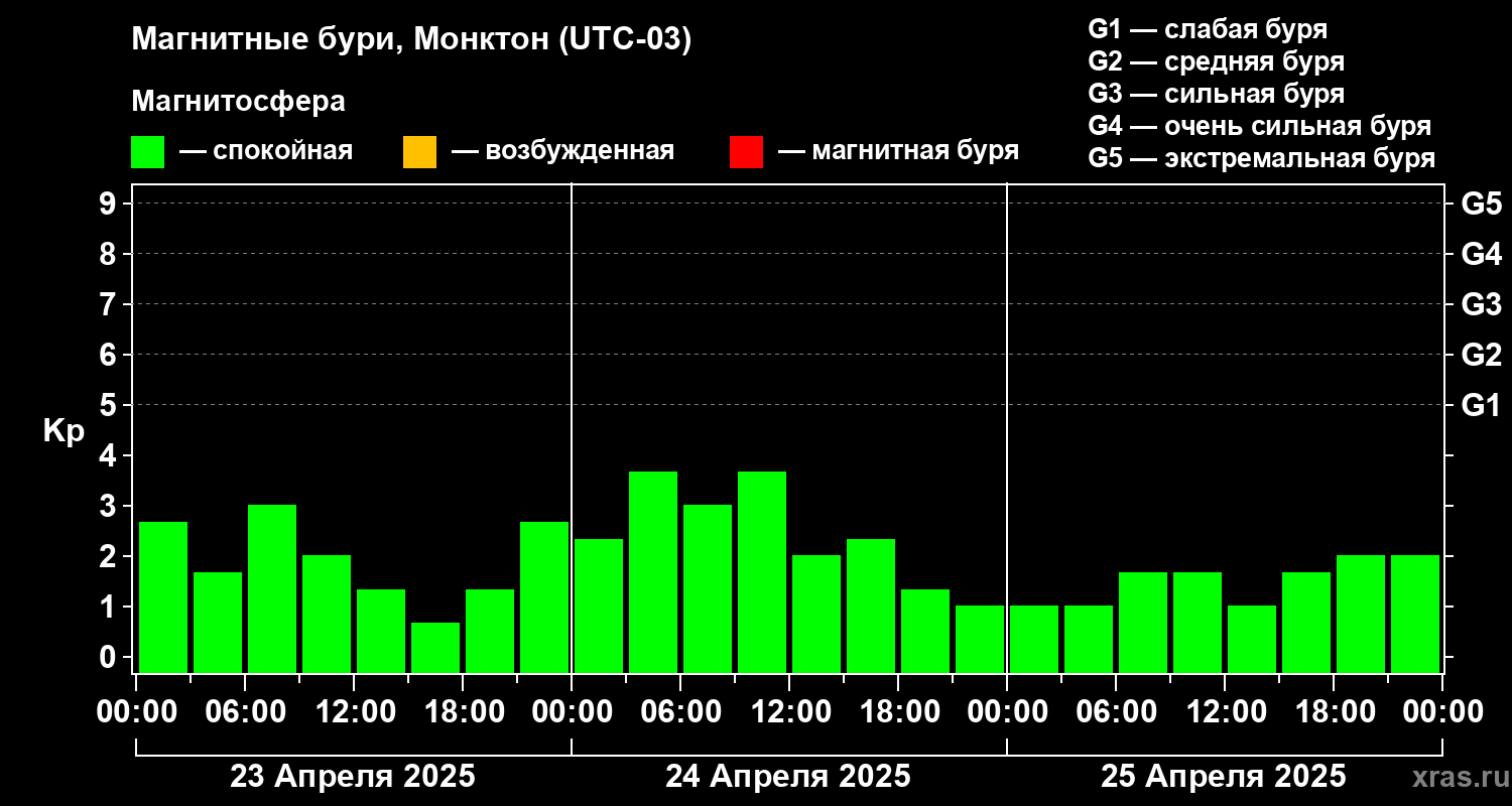 Магнитные бури в Монктоне 25 апреля 2025 года