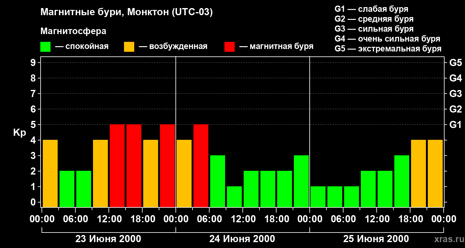 Магнитные бури в Монктоне 25 июня 2000 года