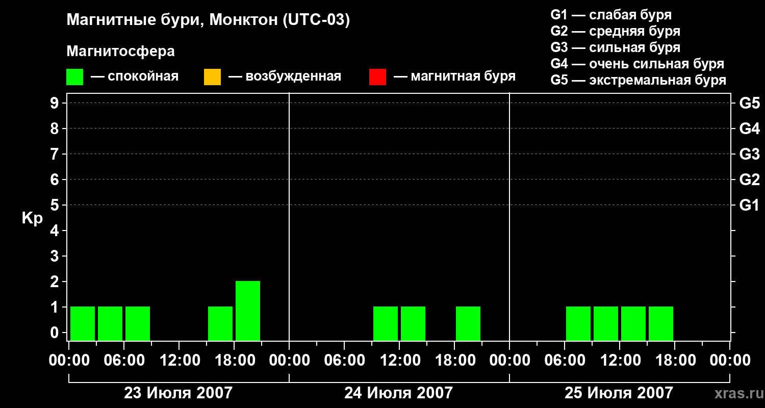 Магнитные бури в Монктоне — 25 июля 2007 года