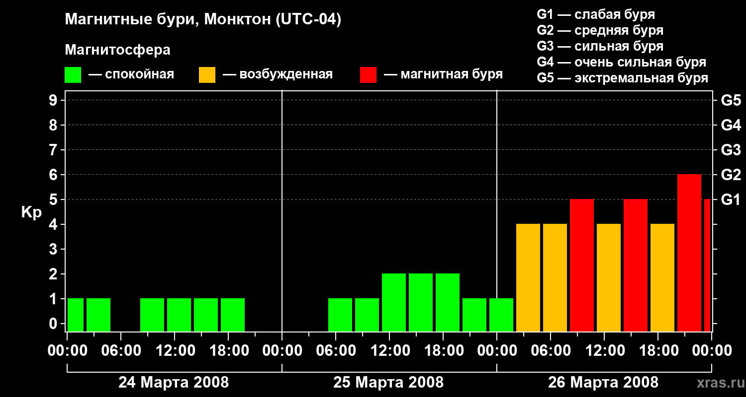 Магнитные бури в Монктоне — 26 марта 2008 года