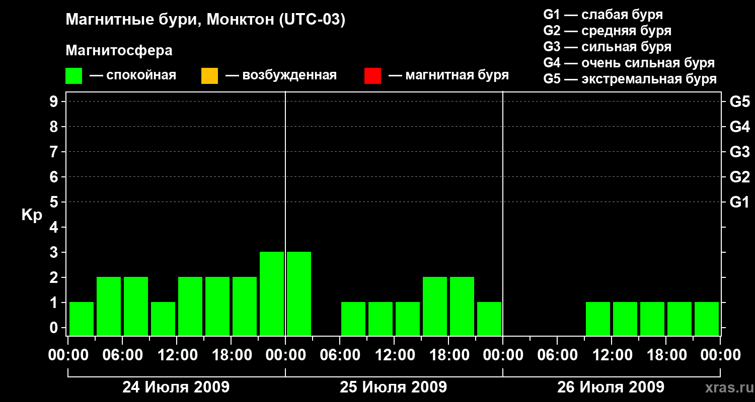 Магнитные бури в Монктоне — 26 июля 2009 года