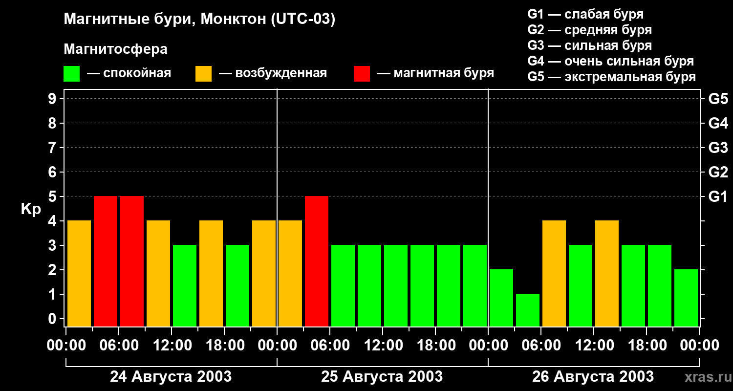 Магнитные бури в Монктоне — 26 августа 2003 года