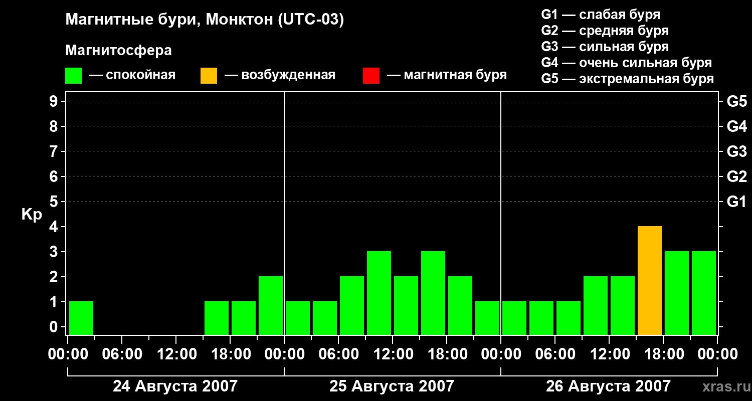 Магнитные бури в Монктоне — 26 августа 2007 года