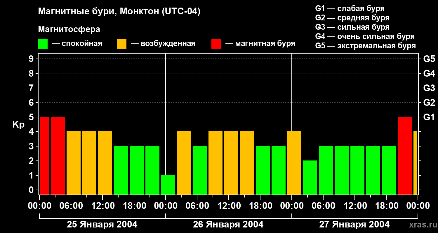 Магнитные бури в Монктоне — 27 января 2004 года