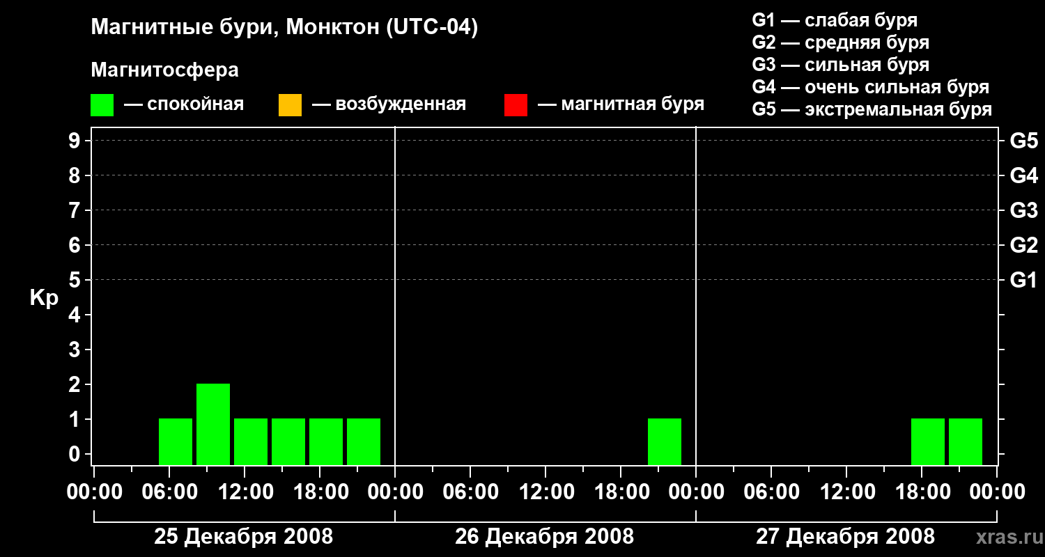 Магнитные бури в Монктоне — 27 декабря 2008 года