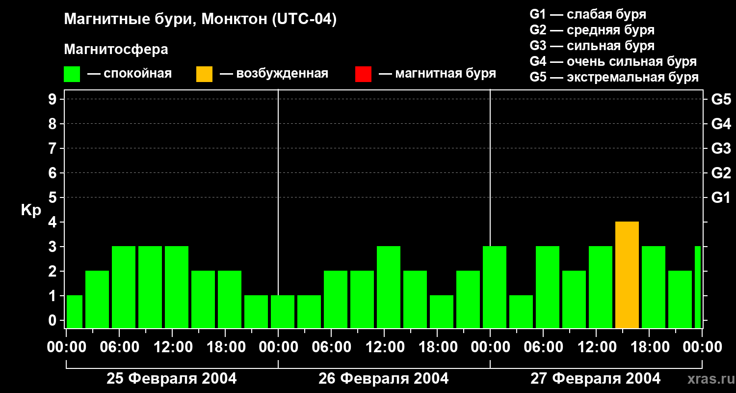 Магнитные бури в Монктоне — 27 февраля 2004 года