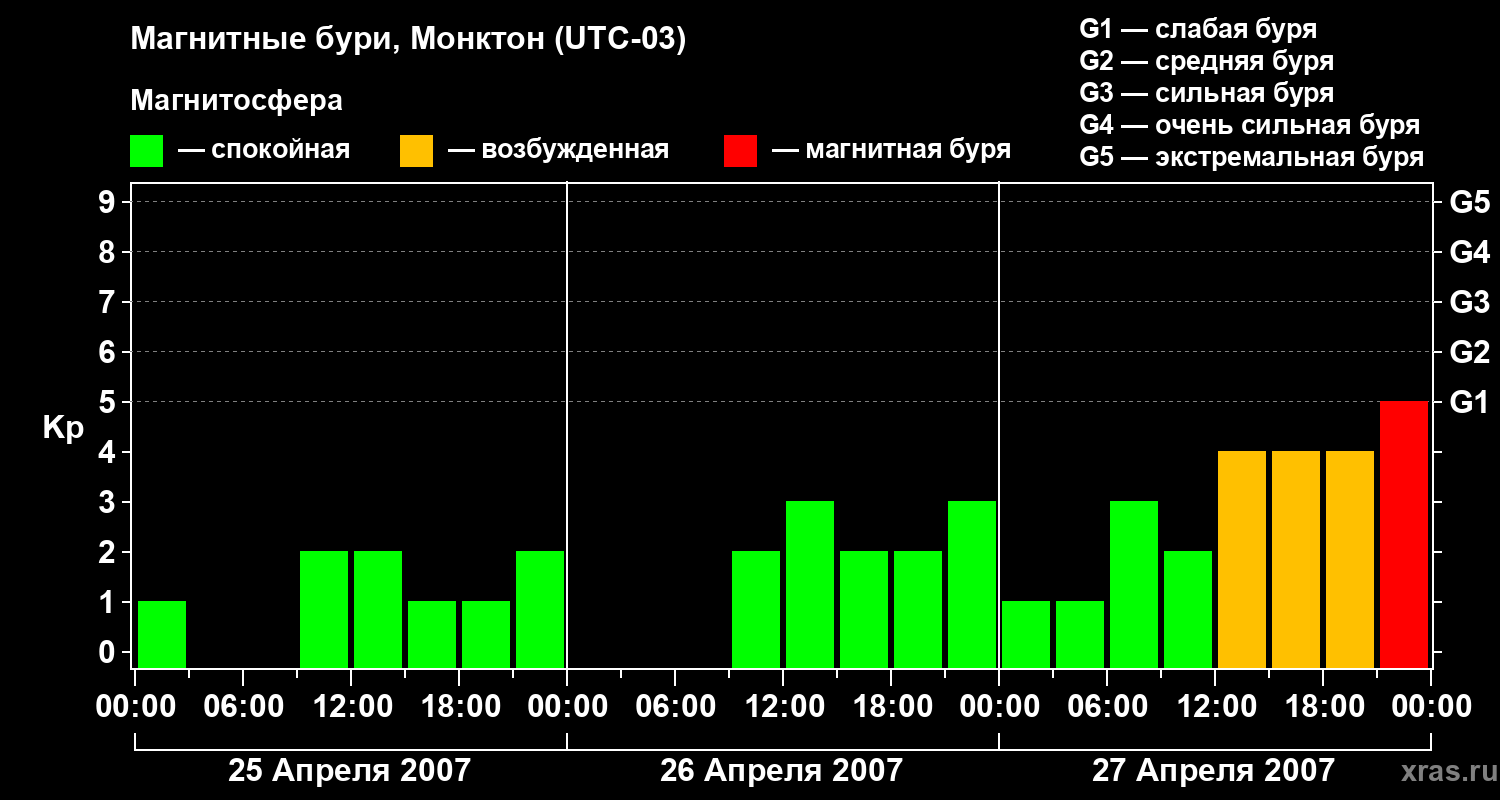 Магнитные бури в Монктоне — 27 апреля 2007 года