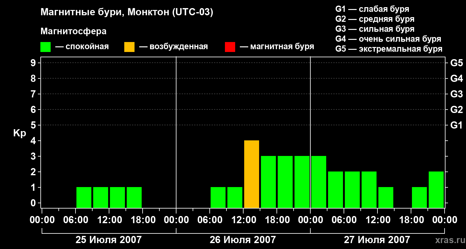 Магнитные бури в Монктоне — 27 июля 2007 года