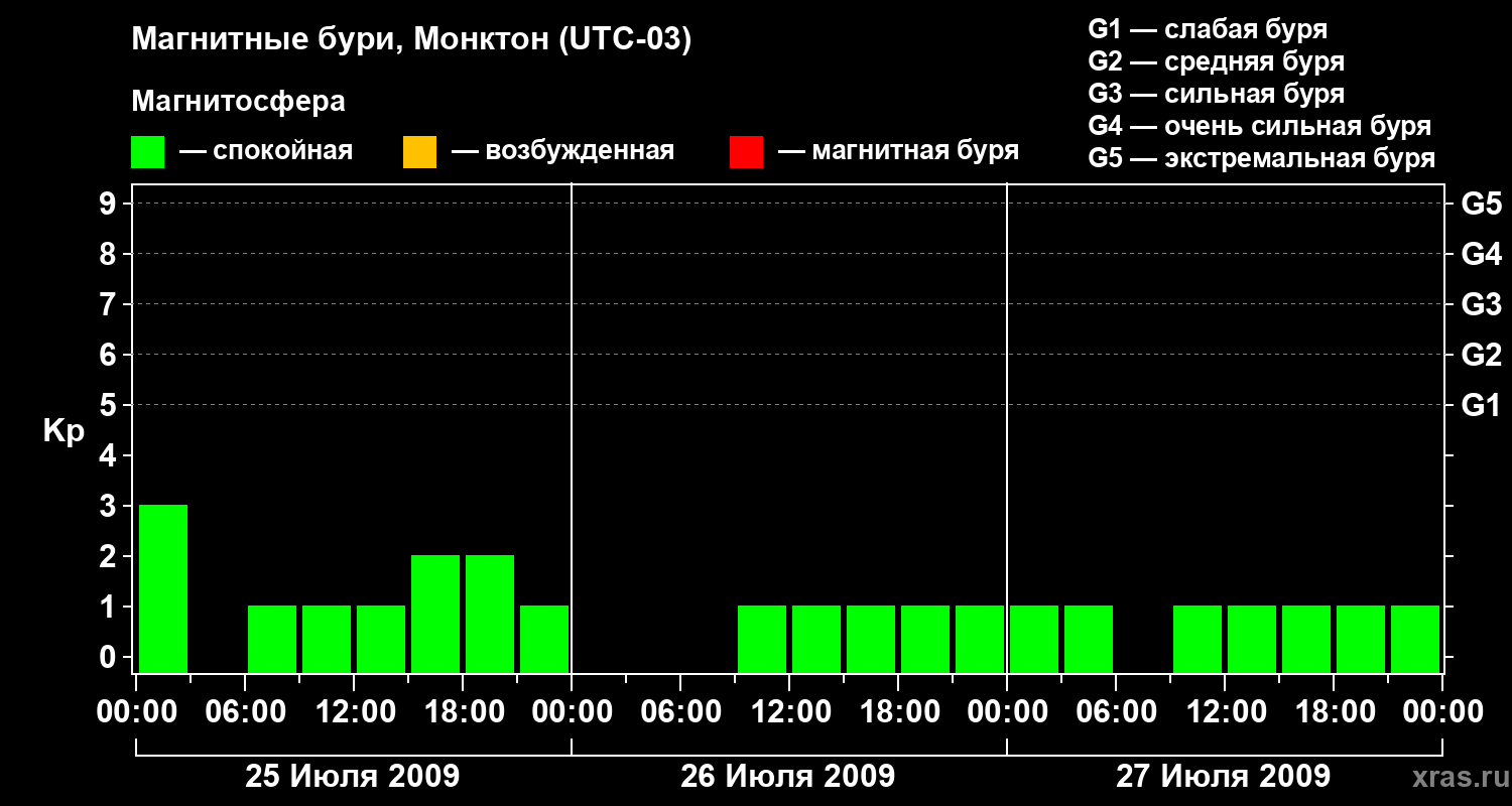 Магнитные бури в Монктоне — 27 июля 2009 года
