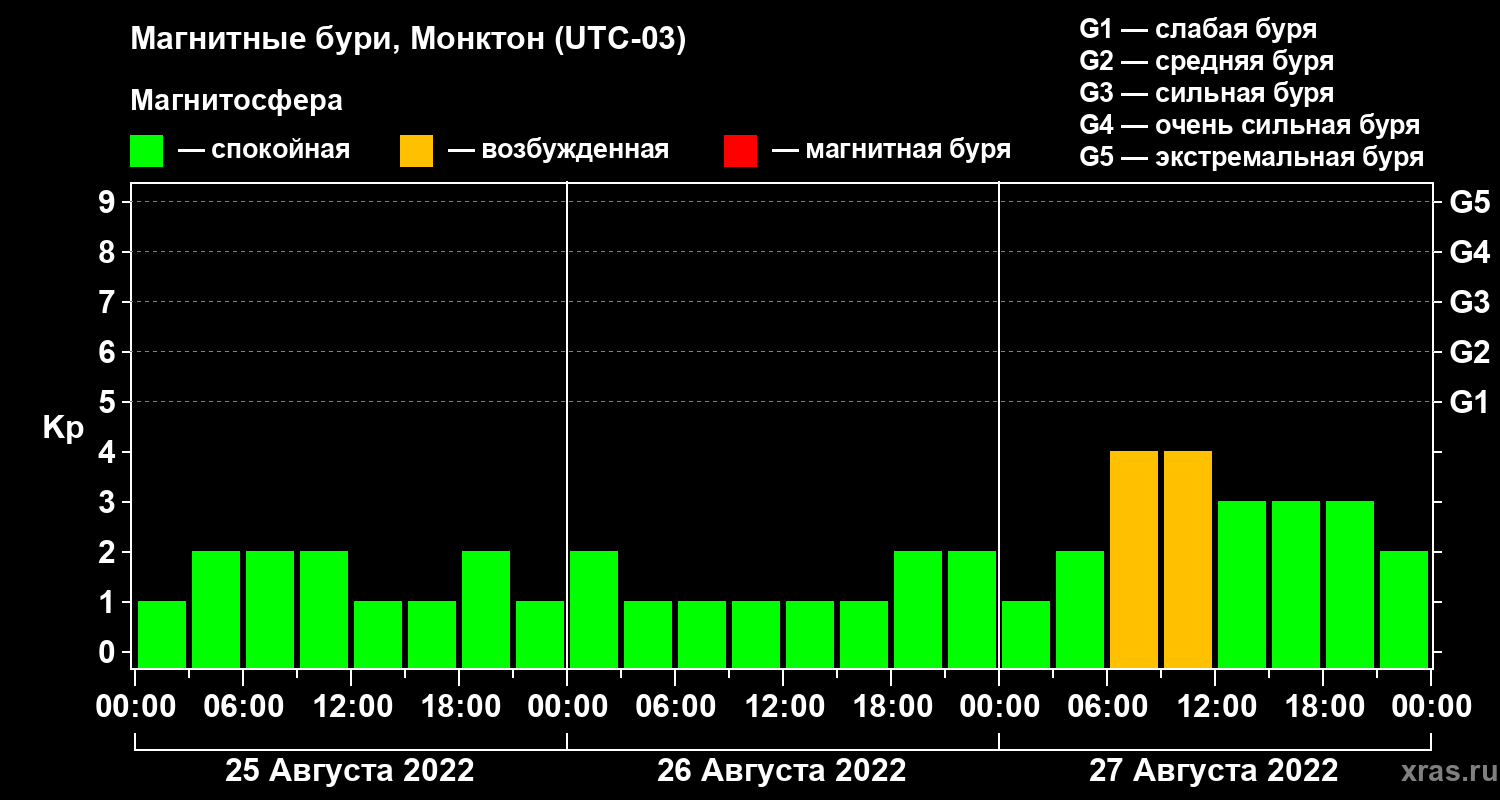 Магнитные бури в Монктоне — 27 августа 2022 года