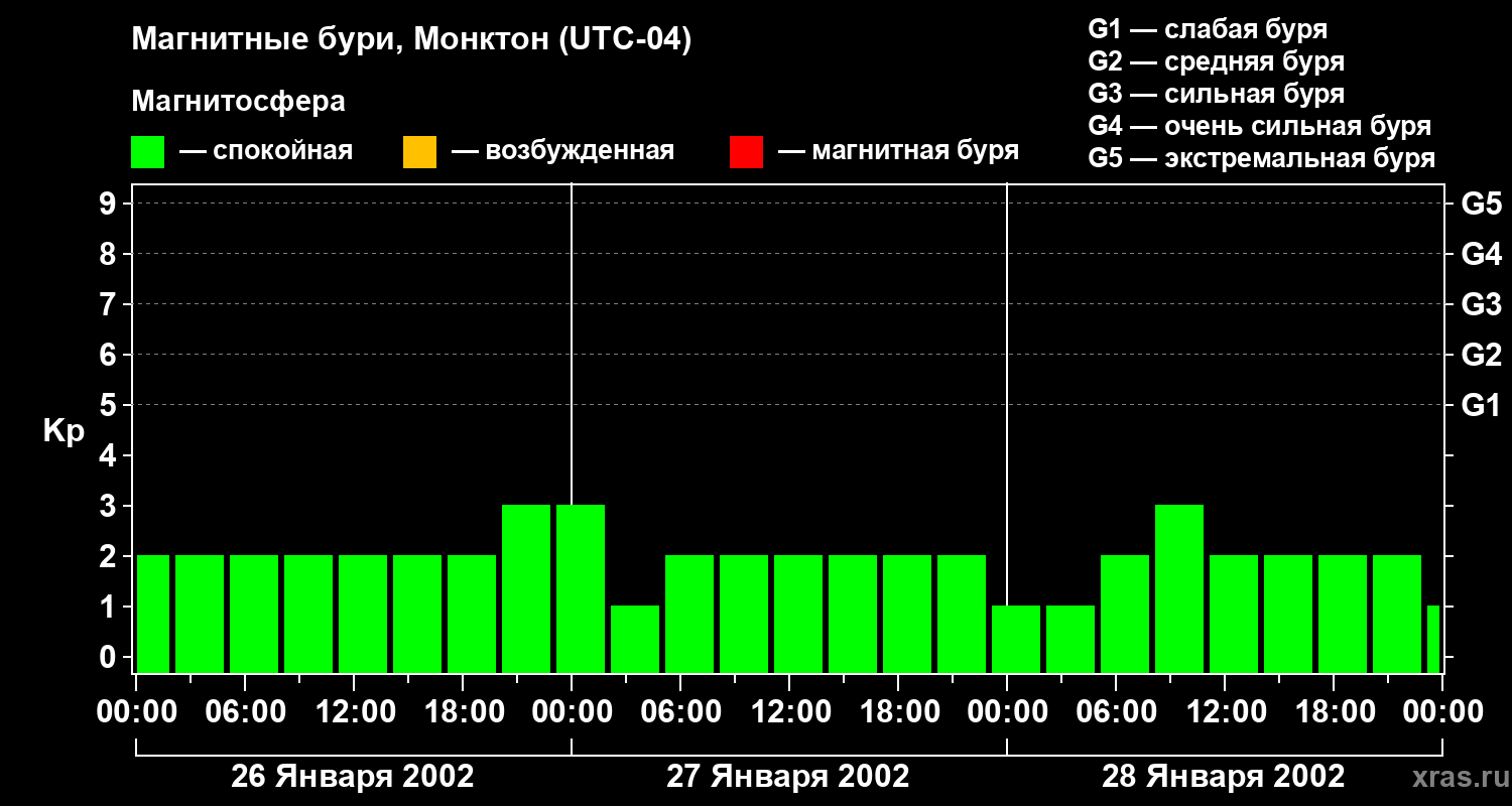 Магнитные бури в Монктоне — 28 января 2002 года