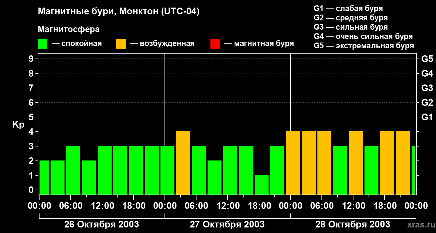 Магнитные бури в Монктоне — 28 октября 2003 года